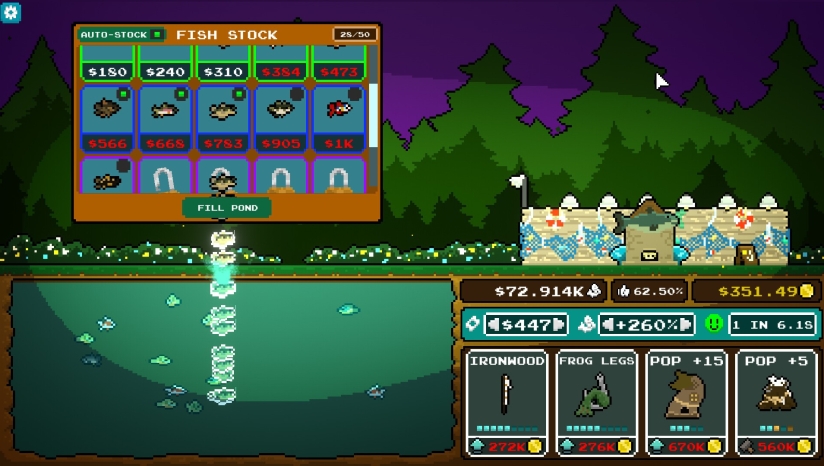 在你的池塘里养上各种水生生物,从常见的到稀有的都有。升级并租用一流的钓鱼装备,确保你的顾客能钓到鱼。