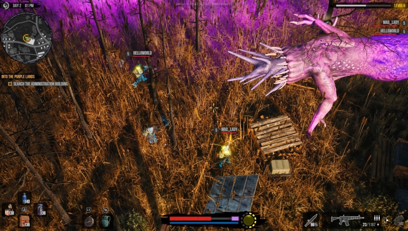 简中《DDoD》是一款近未来背景的俯视角Roguelite战术射击游戏,融合生存元素,支持单人及四人联机玩法。游戏设定在被封锁的“紫域”工业区,这里遭受神秘类意识物质“迷雾”污染,会导致DNA不可预测扭曲,玩家需追寻AI生物暴走源头。游戏拥有庞大可探索地图,武器分为蓝、金、紫三种品质,还可进行火焰、闪电、冰冻等元素改装,其中冰冻属性搭配近战可实现绝杀,成群怪物可利用燃烧瓶与手雷应对。