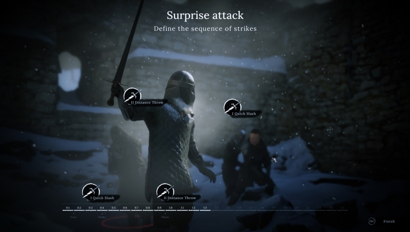 《The Vernyhorn》采用非线性叙事结构,玩家的每一个艰难抉择都会带来长久影响。游戏摒弃了传统开放世界游戏常见的发光箭头与UI指引,鼓励玩家通过观察、记忆与推理来探索世界。战斗系统是游戏的一大亮点,强调动态与真实感。开发团队邀请了世界HEMA(欧洲历史武术)冠军Antoni Olbrychski参与动作捕捉,打造出精准而专业的战斗体验。战斗中不仅依赖刀剑交锋,当失去武器或遭遇埋伏时,踢击、头槌、肘击、勒颈等“绝境动作”均被允许,体现了原始而赤裸的残酷感。游戏还引入了受《最后的武士》启发的“先手伏击”机制,允许玩家在紧张气氛升高时将对话转化为突如其来的生死战。生存机制也是游戏的重要组成部分。玩家需要像真实旅者一样规划路线,携带合适的衣物抵御寒冷,准备足够的食物维持体力,应对寒冷、饥饿等自然挑战。
