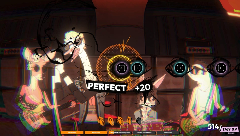 《歌兽经理》拥有鲜明的视觉风格,完美呈现了90年代的摇滚美学。游戏界面设计充满音乐元素,让玩家沉浸于摇滚氛围中。角色设计独特,拟人化的动物角色增添了游戏的黑色幽默感。游戏中的演唱会场景尤为精彩,玩家可以亲自策划专属演唱会,包括曲目配置、舞台灯光、烟雾机和镜球灯等效果,打造独一无二的演出体验。全程语音演出的黑色喜剧风格,加上优质的原创音乐,使《歌兽经理》成为一部集视觉与听觉享受于一身的摇滚狂想曲。