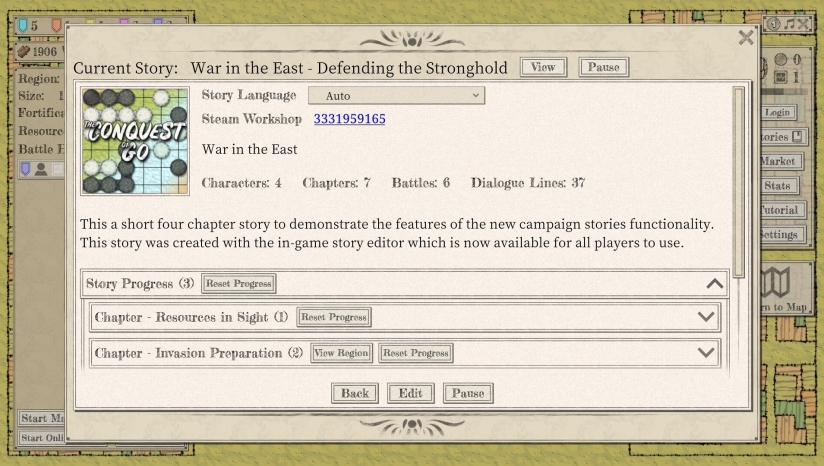 游戏设定在一个以围棋对决决定领土归属的世界中。玩家需要通过围棋对战与计算机控制的对手争夺地图上的土地所有权。不同的领地会呈现多变的棋盘布局和地形特征,而占领的城市将为玩家提供资源支持,助力实现最终的征服目标。