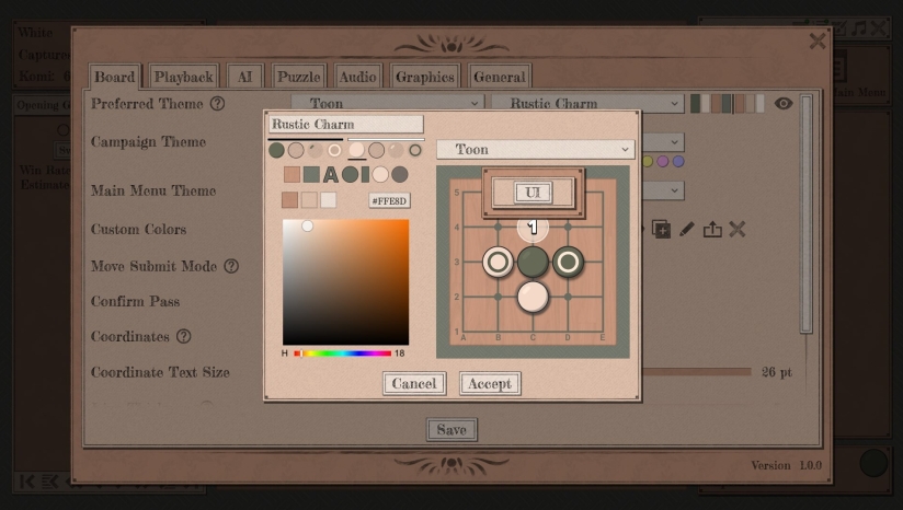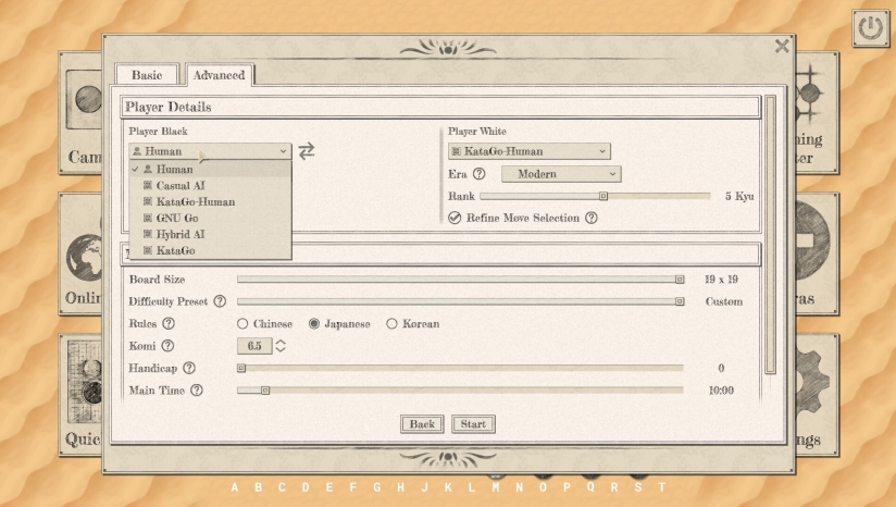 游戏的核心玩法围绕战役模式展开,玩家通过围棋对弈来攻击或防守领土。棋盘尺寸从5x5到标准的19x19不等,适应不同水平的玩家。除了征服模式,游戏还包含围棋谜题挑战,玩家需要通过解决特定局面的难题来保卫领土。资源管理也是重要的一环,玩家可以消耗城池获得的资源来激活特殊能力,例如调整AI难度或获取战术优势。游戏支持本地多人对战,允许两名玩家在同一台电脑上对决,或与AI进行练习赛。时间限制、让子规则和贴目等传统围棋设置均可自定义,增加了游戏的灵活性和竞技性。