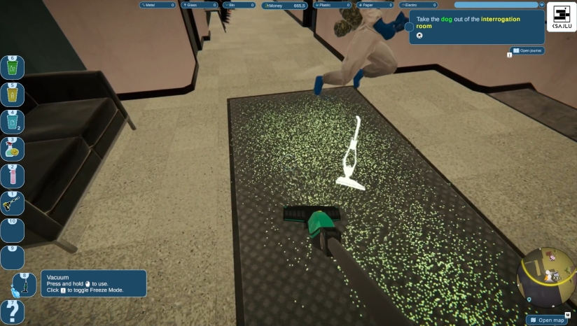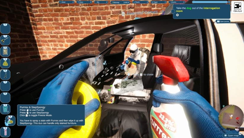 玩家可以在各种荒诞而令人满意的清洁工具之间切换,包括: