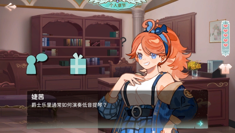 本作的核心玩法融合了音乐节奏与角色养成。演奏系统采用独特的“左手滑音右手打拍”机制,结合横向出现的音符,可以看作是接水果和太鼓达人玩法的大胆结合。游戏提供故事模式和自由演奏模式,玩家需要按照节奏点击屏幕上对应的三色音符区域,完成指定曲目的演奏。除了演奏环节,玩家还可以与游戏中的角色互动聊天,赠送礼物提升好感度,参与街机厅的节奏小游戏,或在图书馆阅读音乐科普短文。特别值得一提的是本地双人合奏模式,允许两名玩家在同一设备上各司其职,进行真正分声部的合奏演出。