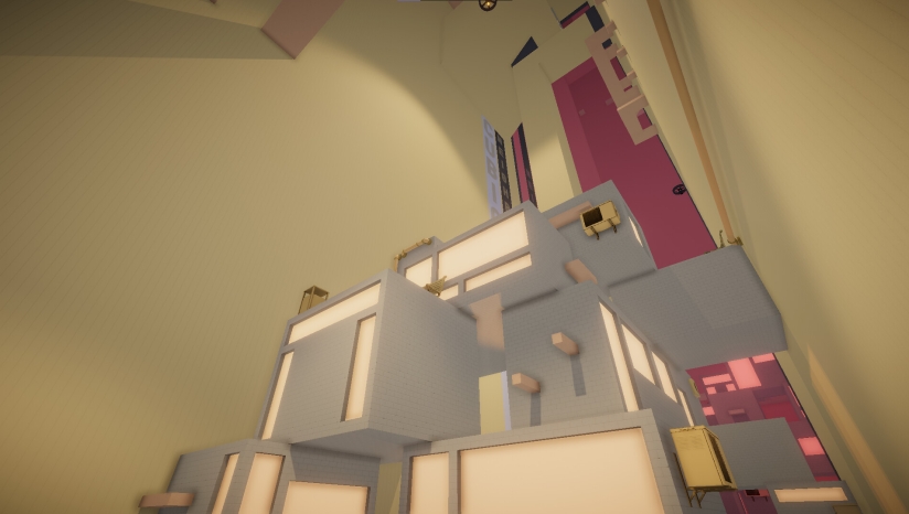 《ULTRA VERTIGO》的核心玩法围绕“奔跑、攀登、坠落、重试”四个关键环节展开。玩家需要在第一人称视角下,在高塔的各个平台间快速而精准地移动。游戏要求玩家兼具速度、敏捷性和专注力,以尽可能快的速度抵达终点。本作最具特色的是其垂直关卡设计,终点线位于巨型垂直关卡的至高处。游戏提供了丰富的自定义选项,玩家可以根据需要调整难度,例如添加影子、光标、检查点,甚至设置回放游戏最后几秒的功能。坠落是游戏体验的一部分,虽然不会造成角色伤害,但会失去进度,情感上的挫折感成为推动玩家再次尝试的动力。