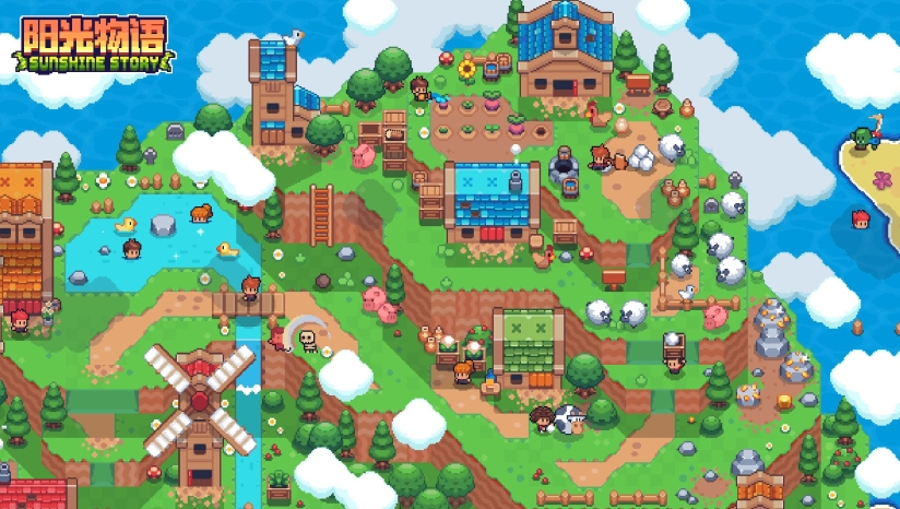 《阳光物语》(Sunshine Story)是由DreamSpaceEra开发发行的2D像素风开放世界模拟经营游戏。游戏以Sunbeam Isles为舞台,融合探索、建造、冒险与多人合作玩法,玩家可漫游草原、雪山、火山等多样地貌,利用300余种模块化组件打造专属家园。核心玩法包含种田驯养、20+洞穴探险(挑战60+怪物及守护巨龙),支持4人联机协作,共同体验日夜循环的治愈系田园生活。游戏兼顾轻松建造与轻度冒险,主线流程15-20小时,凭借高自由度与社交互动,成为模拟经营爱好者的休闲佳作。