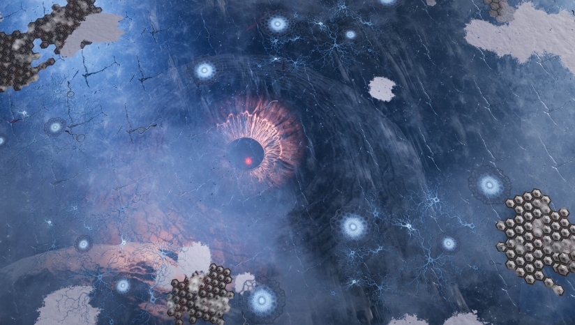 游戏采用独特的科幻视觉风格,宇宙场景充满细节:星云的光晕、小行星带的碎片以及古代巨构的宏伟结构,营造出既神秘又危险的氛围。舰船与角色设计融合科技与奇幻元素,例如灵能者的特效凸显了遗物共鸣的超自然感受。战斗画面中,激光武器、导弹追踪与能量风暴等特效流畅且富有冲击力,而环境互动(如星云遮蔽效果或爆炸连锁反应)进一步增强了沉浸感。尽管部分场景可能因特效密集出现卡顿,但整体画面表现力强化了深空探索的未知与震撼。