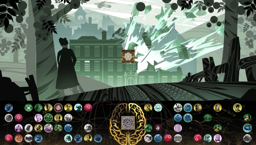 游戏的核心玩法围绕“掷骰获取线索”与“碎片拼凑真相”展开。玩家通过投掷六面骰子随机抽取线索卡牌,这些卡牌分为【门扉】(地点)、【十字架】(人物)、【千年虫】(时间)等类别,每一类都承载着不同的叙事碎片。游戏中包含数百条线索,玩家需要运用逻辑推理将这些零散信息拼接成完整叙事。随着游戏进程,玩家可以通过“熟练度”系统解锁更多骰子:当多次投出某一特定面时,就能获得一个六面都是该符号的专用骰子,逐步降低随机性。游戏提供多结局路线,根据玩家对线索的选择会导向截然不同的结局,如“手雷结局”和“疯狂结局”。