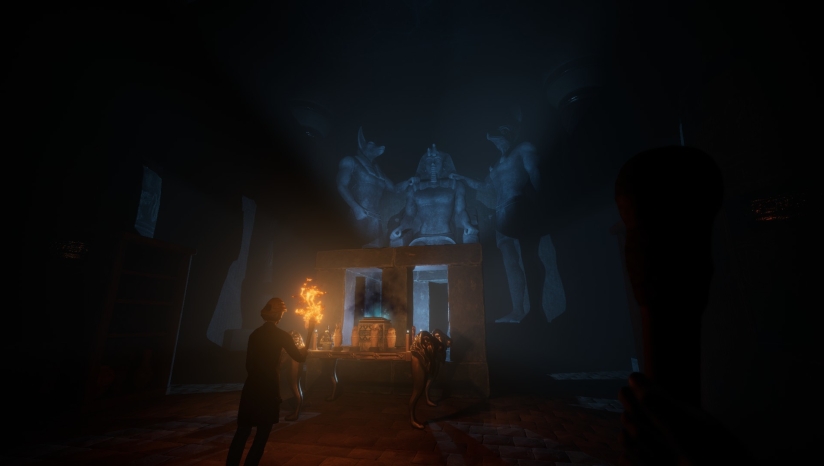 游戏采用3D画面营造出阴森恐怖的古墓氛围。场景设计逼真还原古埃及遗址风貌,从幽暗墓穴到神秘符号都细致呈现。光影效果巧妙运用黑暗与微弱光源制造紧张感,配合恰到好处的音效设计,共同构建出令人毛骨悚然的游戏环境。在VR模式下,触觉反馈进一步强化沉浸感,使玩家仿佛亲身探索神秘危险的金字塔内部。这些视觉与听觉元素的结合,成功打造出持续的心理恐怖氛围。