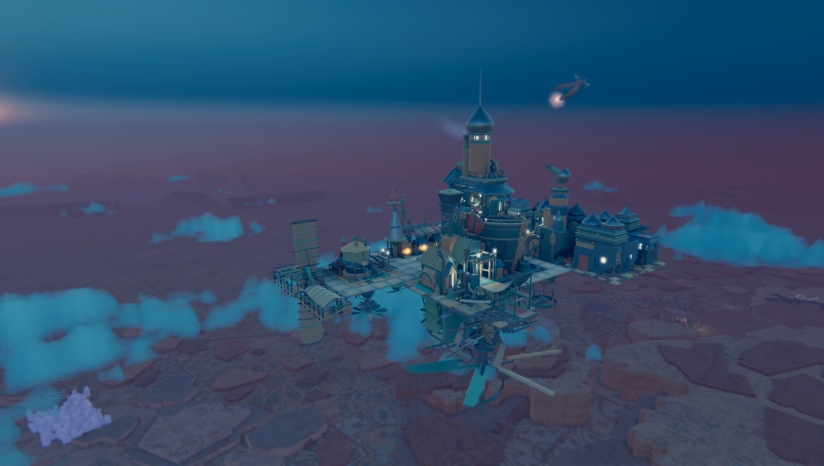 游戏采用中亚艺术风格,画面明亮治愈,光影效果出色,营造出梦幻般的氛围。虽然建筑与居民建模不算精细,但独特的蒸汽朋克元素与良好的昼夜变化系统弥补了这一不足。UI设计典雅暗色,令人回想起蒸汽朋克时代飞行器的幻想旧梦。配乐清静宁静,与游戏希望主题相得益彰,为需要希望的世界恢复安宁。镜头可随意调整远近,既可总览整座漂浮城市,也可近距离观察居民在街道中的穿行。