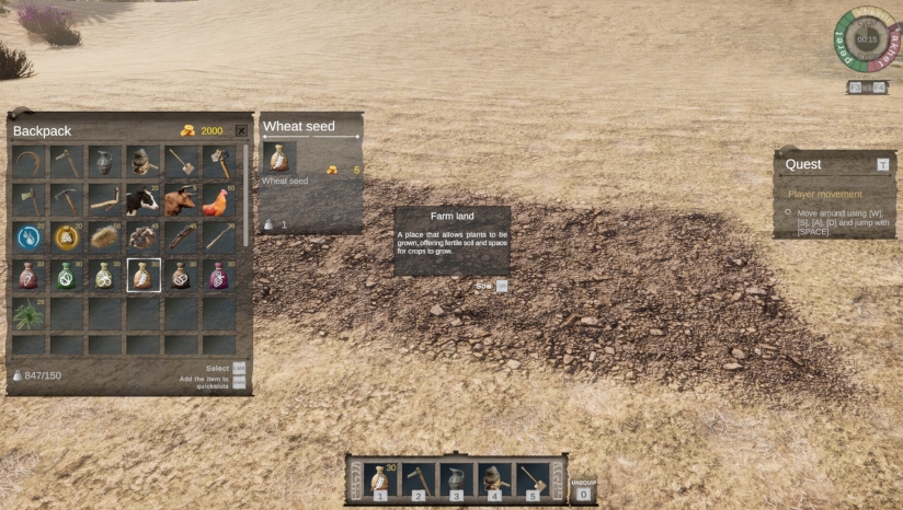游戏玩法核心围绕完整的农业生产链展开。玩家需要亲手完成拓荒开垦、播种灌溉、收割加工到最终销售的全过程。具体操作包括使用砍刀与斧头清理原始林地,借助牲畜协助砍伐树木;通过犁地、播种、引水灌溉来培育作物;收获后的谷物需要加工成面粉等产品,再运往城内交易换取资金。除了农业生产,玩家还需规划基础设施,如修建水渠、道路和桥梁,建造粮仓和磨坊等设施。游戏中还需要照料牛群等动物,通过喂养饮水让它们协助耕种和运输。随着农场规模扩大,玩家可以逐步解锁工坊、生产建筑与神庙等设施,实现农场的可持续发展。