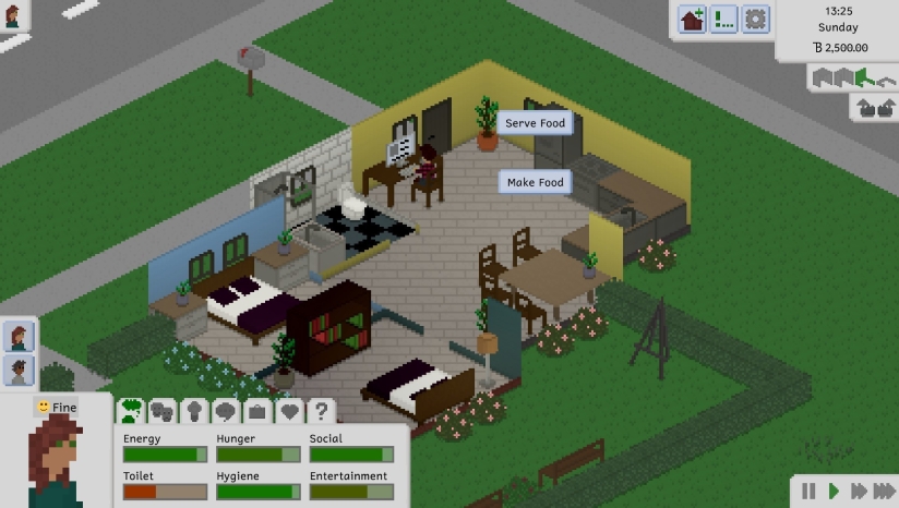 游戏采用复古的等距像素艺术风格,以16-bit像素风营造出怀旧而温馨的视觉体验。虽然画面采用像素风格,但细节表现十分精致,从家具摆放到建筑风格都经过精心设计。游戏中的图形效果细腻,配合动态环境变化,使微观世界栩栩如生。当隐藏墙壁时,墙镜和开放式淋浴等元素会智能调整显示方式,展现出良好的视觉效果和用户体验。