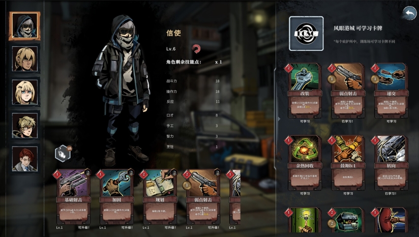 本作创新性地结合了卡牌策略与跑商模拟两种玩法。玩家需要在二十多个庇护所和数十个交易点之间辗转贸易,通过低价买入、高价卖出的基本经济法则积累资源。旅程中,玩家将面临严寒、饥饿、车辆故障等多重挑战,需要合理管理燃料、食物、药品等关键资源。游戏独创了跑路+战斗的双线养成机制。卡牌分为两类:用于应对敌人和突发状况的战斗卡牌,以及用于提升移动效率的移动卡牌。玩家可以招募多名角色组成队伍,每名角色都可以自由学习任意技能,从而构建出符合个人游戏风格的卡组。这种高自由度的养成体系为游戏提供了丰富的策略深度。