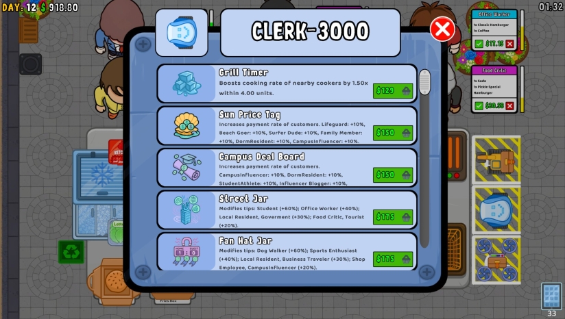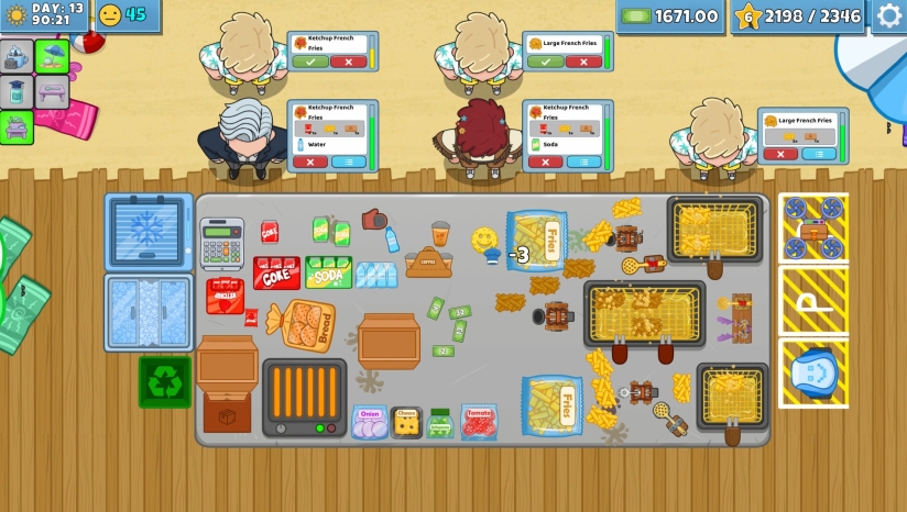 扩展和升级您的摊位:用你的收入来补充物资,购买新机器,让你的展台更有效率。