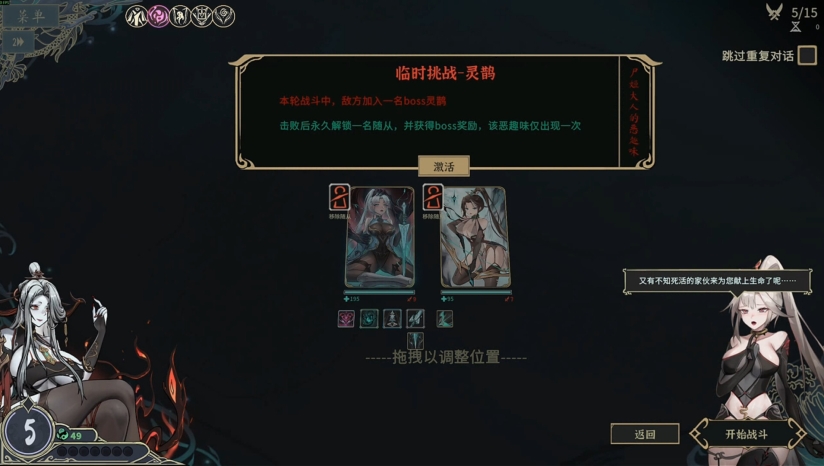 游戏最大特色在于其“恶趣味”设定与深度策略的融合。尸姬大人可在每场战斗前选择各种挑战来折磨随从,以换取额外奖励。随从系统极具特色,例如亡国姬蓝烟的天赋“蓝烟令”可指挥左侧单位协同攻击,形成连锁攻击效果。高度自由的构筑系统让玩家可尝试各种流派:既可汲取敌方攻击生命壮大自身,也可献祭队友“借”命杀敌,甚至召唤飞剑万剑齐发。部分法宝在特定随从身上会触发专属效果,如绣锁的“涌血心”可额外抽取专属卡牌。游戏还提供了6套不同流派的尸姬皮肤,这些外观装饰品也会影响游戏机制。