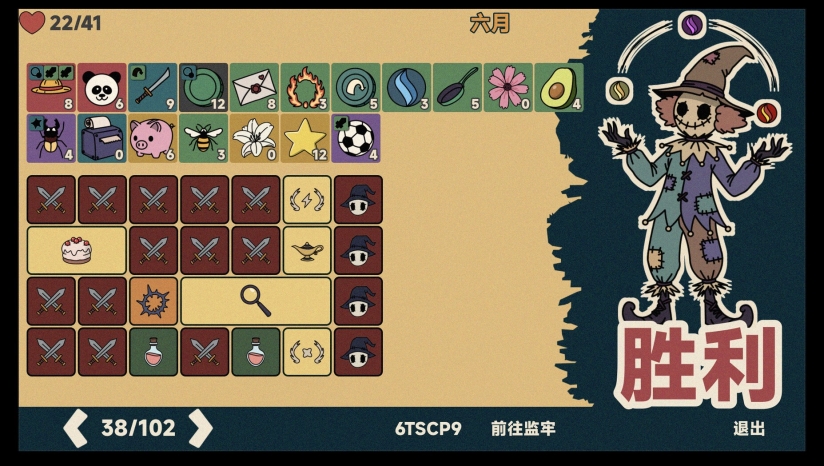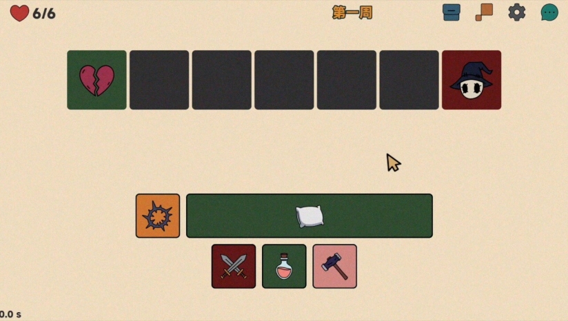 在选择完需要挑战的稻草人头目之后,你将获得每局均不一样的初始卡组,随后自主选择“行动”和“强化贴纸”,是立刻强化卡牌度过前期还是稳步发育等待后期,这完全取决于你。