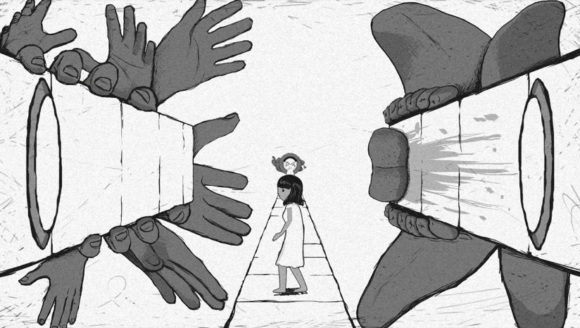 视觉风格:黑白画风与简约线条,增强紧张感与压迫感。