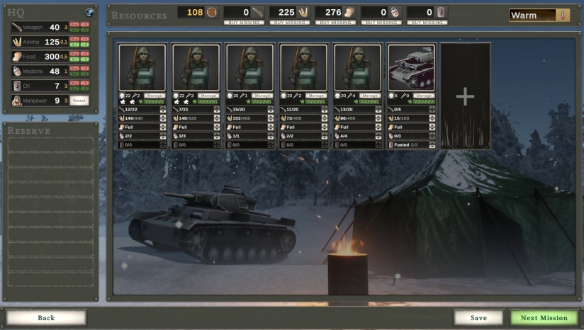在任务间隙,你需要照顾伤员,为队员提供食物和取暖,并为他们配备装备。但资源稀缺,且冬季正变得越来越严酷。