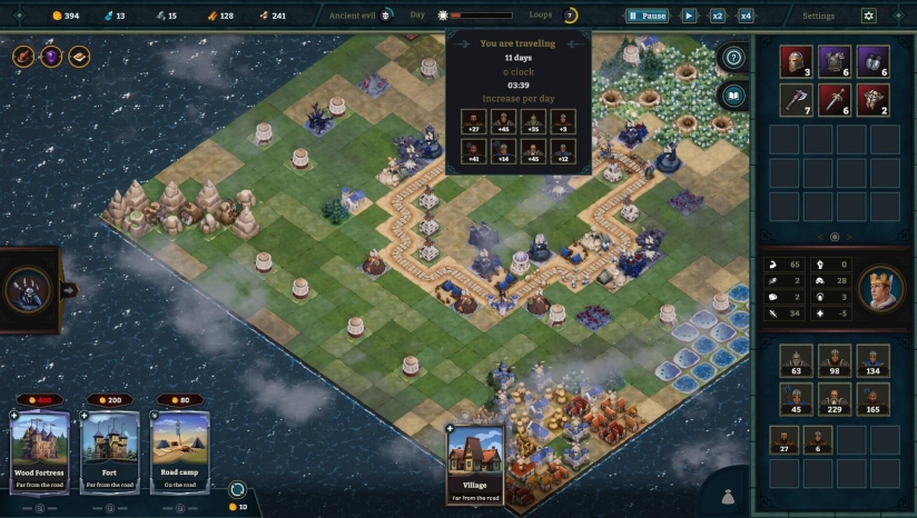 放置地块需要使用卡牌。卡牌可以在战斗中获得,或用金币购买。商店只会出售你当前卡组中的卡牌,而每完成一圈,你还可以获得一张随机卡牌。精心构建的卡组能确保你在关键时刻拥有制胜的工具。