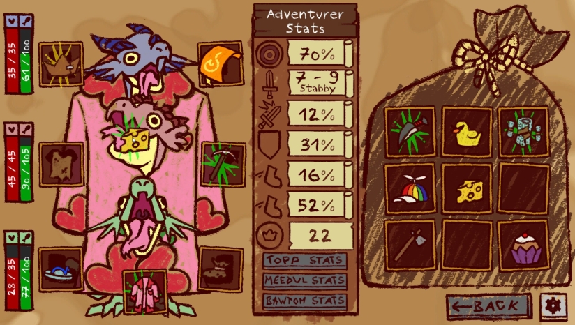 三名科布德人在无意中听到成功的冒险家如何吃到最好的食物,拥有最闪亮的东西后,发现自己被冒险的诱惑所吸引。这个身材高大的三人组狡猾地伪装成风衣,在不断加深的地牢中寻找闪亮和美味!