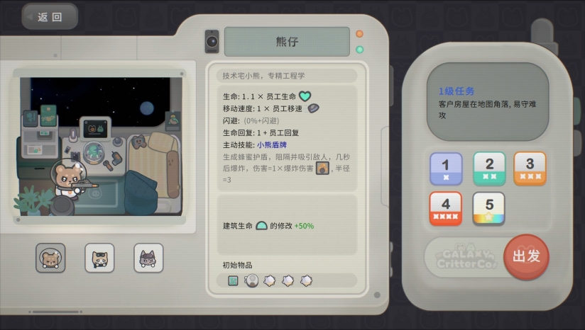 DEMO提供3种员工、35+建筑武器,配合90+个被动道具任你选择!