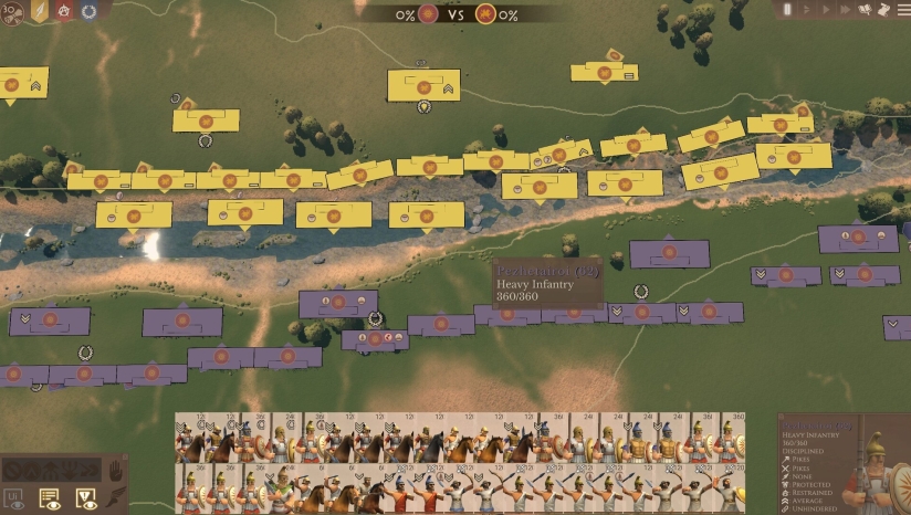 作为即时战术游戏,核心玩法围绕大规模军队指挥展开。玩家需要合理规划将军位置、派遣信使、调配兵力,在千军万马的战场中掌控战局。游戏融入了复杂的战争机制,包括编队移动、士气动摇、战争迷雾、地形影响和包抄战术等元素 。玩家既可以指挥历史战役,也能通过自定义模式创建专属战斗,自由筛选势力、调整军队规模、设定地图与难度。游戏支持热座模式与电脑对战,允许2-4人轮流操控,主线战役单局时长约1-3小时,而自定义模式可无限重复游玩,具有很高的可玩性。