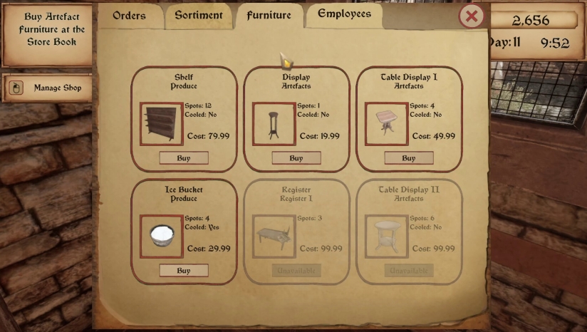 游戏的核心玩法围绕店铺管理、库存控制和战略投资展开。玩家需要为货架补货,商品范围从苹果、面包到斧头、盔甲应有尽有。通过设定价格、服务顾客来获取利润,同时要仔细跟踪库存,避免某一物品过多引起顾客不满,也要把握稀有商品的定价以获取最大利润。玩家可以资助冒险者探索危险之地,只需少量投资就能派遣他们出发,这些冒险者会带回装满战利品的箱子,其中包含稀有武器、装备和可转售的珍贵物品。游戏还包含武器修复系统,玩家可以清理、修复并升级破旧的中世纪武器,让生锈的钢铁重现锋芒。随着游戏进展,玩家可以升级店铺以吸引更多顾客并扩大容量,增加货架、改善展示效果,并定制布局以打造高效繁荣的交易场所。
