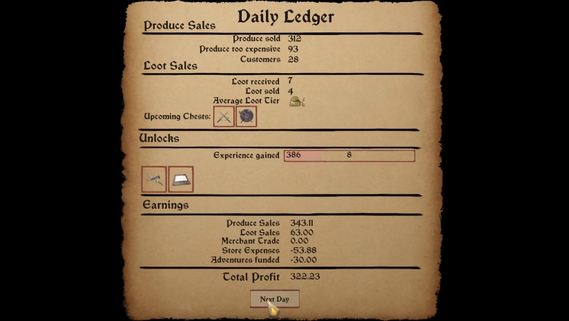 《Loot & Ledger》最大的特色是将库存管理、定价策略与投资回报等经营元素巧妙结合。游戏创造性地将店铺经营与冒险投资融为一体,玩家无需离开柜台就能参与冒险活动,通过资助冒险者来间接获得珍稀物品。游戏强调战略性决策,玩家需要不断选择投资方向、聚焦产品线,逐步将店铺打造成领域内最值得信赖且盈利最高的商铺。这种结合了日常生活与冒险元素的经营模拟,为玩家提供了在中世纪背景下构建商业网络的独特体验。