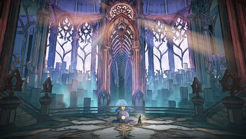 游戏采用唯美的手绘水彩风格,结合3D渲染技术营造出具有纵深感的2D场景。视觉风格汲取图像小说、经典科幻和漫画灵感,冷色调的色彩搭配与阴暗基调共同构建出神秘氛围。场景设计充分利用3D优势,玩家可轻微旋转视角观察被前景遮挡的隐藏路径,将美术元素转化为游戏交互的一部分。飞船环境设计细致入微,茂密植被与破败机械形成强烈对比,宏伟建筑与渺小角色的比例失调更强化了孤独感和神圣感。配合由75首曲目组成的原声带,游戏成功营造出令人难忘的沉浸式体验。