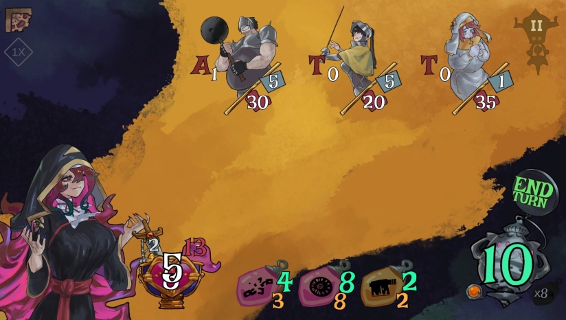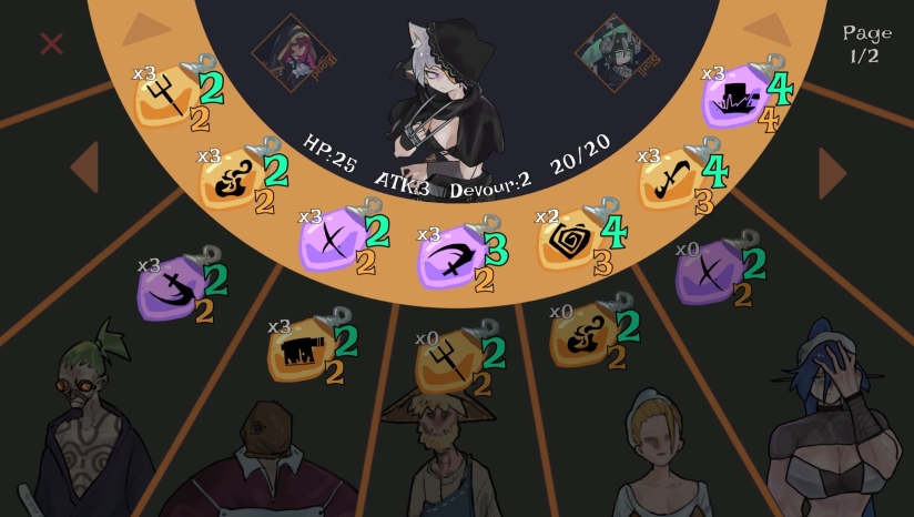 作为一款以卡牌进行战斗的角色扮演游戏,《救赎之歌》的核心玩法围绕卡牌构建和回合制战斗展开。玩家可以选择一名角色挑战散布在王国大陆上的各种关卡,通关特定关卡后能收获新的信徒并获得新的卡牌,从而进一步组建更强大的牌组。游戏采用线性关卡设计,体量较小,仅需3小时左右即可通关。战斗系统中,玩家手牌固定为三张,打出后会自动补充。每张卡牌拥有三种关键属性:效果、打出费用和丢弃产出费用。玩家在战斗中需要做出关键决策:是消耗行动点发动卡牌效果来攻击敌人或获得增益,还是舍弃卡牌来获取更多行动点。这种独特的"吞噬契约"机制为战斗增添了策略深度。