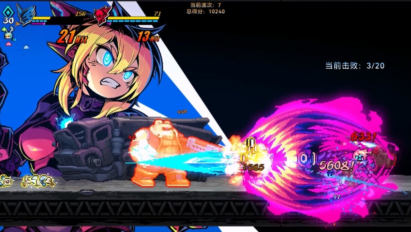 《超合金冲击》(Super Alloy Crush)是一款由独立工作室Alloy Mushroom开发的2D横版格斗动作游戏,游戏的核心玩法围绕双人合作展开,支持本地或在线二人协作。玩家将扮演凯里和牧,击败敌人获得宝藏!与好友携手并肩接受挑战!