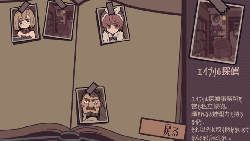 《艾普里尔侦探事务所》是一款主打直觉判断的轻量推理游戏,玩家将扮演新手侦探艾普里尔,接手多起彼此关联的案件,面对九名各怀心事的嫌疑人。游戏玩法极度简洁,无现场勘查和交叉质证环节,仅通过对嫌疑人进行询问、判定是否为犯人两种选择推进流程,玩家需凭借对话细节与第一印象做出判断。游戏设计有十二种不同结局,单次选择无法拼凑完整真相,需多次重复游玩收集线索,解锁碎片化的剧情碎片,挖掘嫌疑人背后的隐藏关系,全结局通关耗时约3-4小时,精致的画风搭配充满博弈感的推理过程,带来独特的轻推理体验。