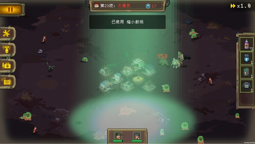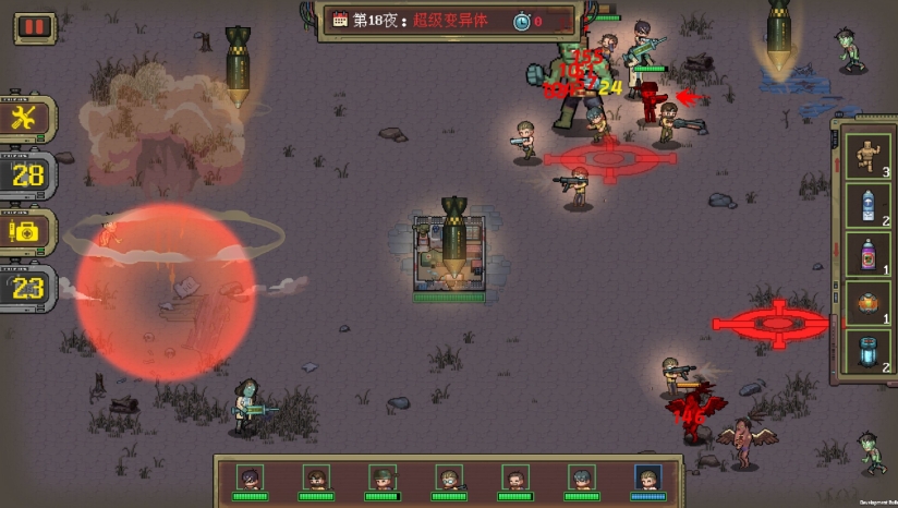 游戏的核心玩法融合了模拟经营与策略战斗,并引入了昼夜交替机制。白天时段相对安全,玩家可以探索环境、收集资源、建设并升级营地、分配物资以及安排幸存者的工作。夜晚则是战斗时刻,丧尸群会主动进攻营地,玩家需要部署防御设施,指挥幸存者抵御敌人,战斗采用自动进行的方式,但玩家可以通过控制幸存者走位和触发道具来影响战局。