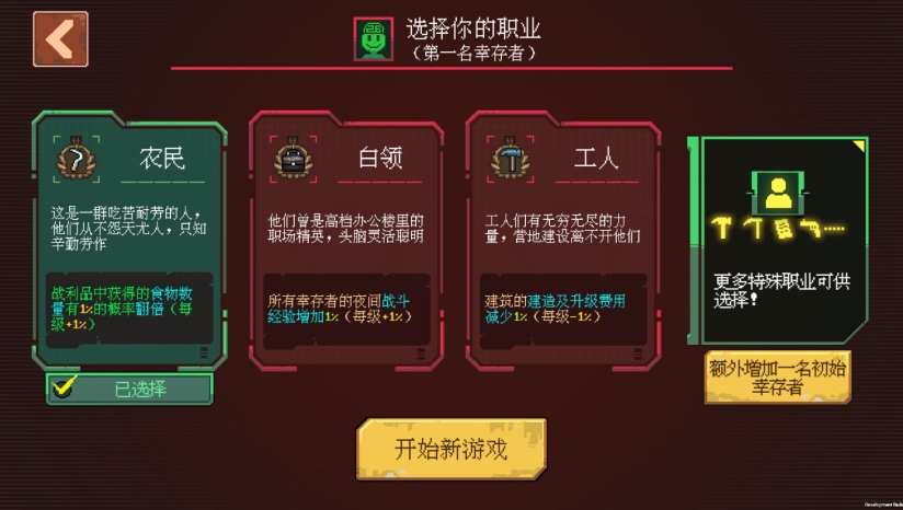十多种职业各有不同的天赋树,影响建设和战斗方式。玩家可以对武器附加特性,对幸存者进行生化改造,提升其战斗能力。