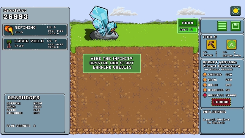 在《Exofinity Clicker》中探索新世界,开采传奇的无限水晶(Infinity Crystal)并赚取积分吧!点击以提取稀有宇宙矿物,升级您的建筑,扩大您的影响力,从一个小哨所发展成为一个跨行星的强大帝国。