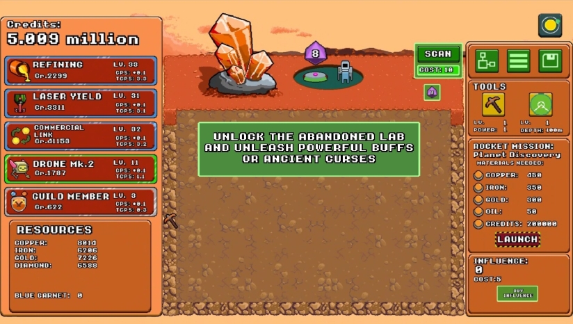 2、从您不断发展的采矿帝国中赚取和管理积分(或称金币/货币)。