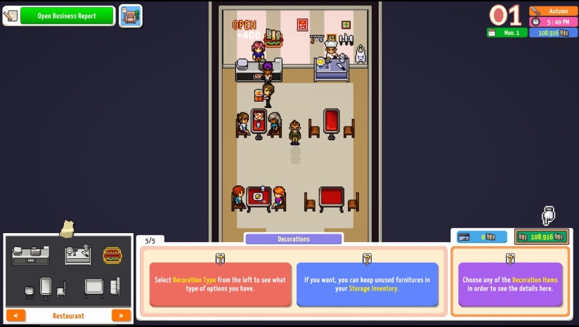 《像素人生》最显著的特色是其高度自由的游戏体验。游戏包含14种可学习技能和10种梦想道路,玩家可以成为摇滚明星、犯罪大师、畅销书作家或享受家庭生活,每个存档只能选择一种道路,增加了游戏的重玩价值。游戏还设计了真实的经济系统,玩家行为会影响市场波动,例如大量玩家选择音乐职业会导致演出报酬下降。