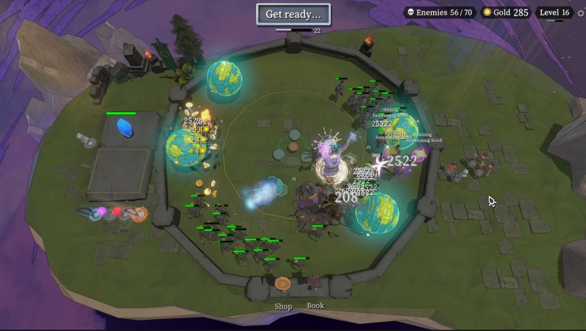 核心玩法围绕“召唤+合成+进化”展开,玩家在圆形战场上召唤英雄单位,通过合成机制解锁更强力的角色,抵御源源不断的敌潮。每局游戏的英雄组合、成长路线均随机生成,搭配商店抽奖、道具装备加持,需灵活调整阵容,兼顾运气与策略,适配不同难度的敌人攻势。