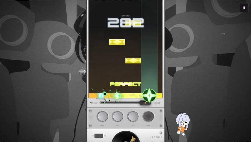 游戏最大的特色是其丰富的可定制性和持续更新的内容。目前游戏提供4位可选角色、13种音符样式、14种击打音效,每位角色都对应一套独特的鼓机音色与人物立绘。游戏采用本体+“永久通行证”DLC的付费模式,类似于《喵斯快跑》的“计划通”,购买后可永久获得未来所有更新内容。得益于dizzylab平台近千张专辑的支撑,游戏曲库有望持续扩充,为玩家带来更多个性化、多样化的音乐。
