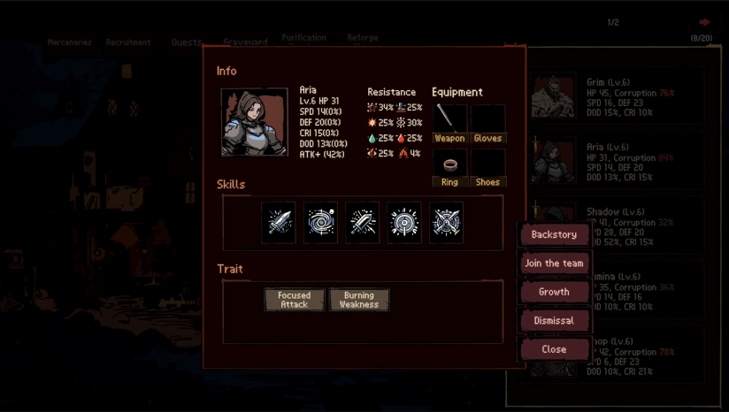 本作最突出的特色是 “短而精”的设计理念。游戏摒弃传统RPG的冗长流程,通过精简的关卡和Boss战核心循环,让玩家在短时间内体验完整的策略乐趣。佣兵系统包含随机特性和三种成长方向,每次开局都能尝试新的战术搭配。此外,所有成就均可通过一次通关完成,兼顾了休闲与硬核玩家的需求。开发团队亦强调玩家反馈对游戏平衡性与战斗系统优化的作用,并通过定期更新持续改进体验。