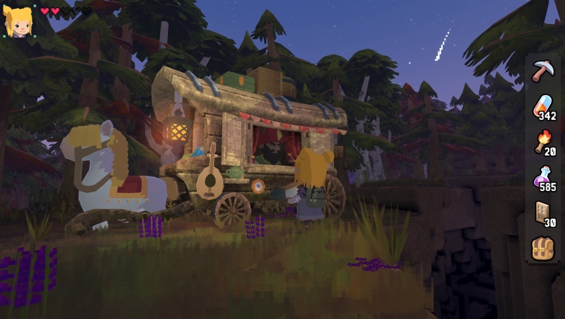 游戏采用像素图形风格,以色彩鲜明、设计可爱的画风呈现开放世界。这种视觉风格与游戏温馨的基调相得益彰,虽然不是追求写实效果,但通过细腻的像素艺术和动漫元素,营造出独特且吸引人的视觉魅力。世界设计注重细节,为玩家提供丰富多样的探索场景。