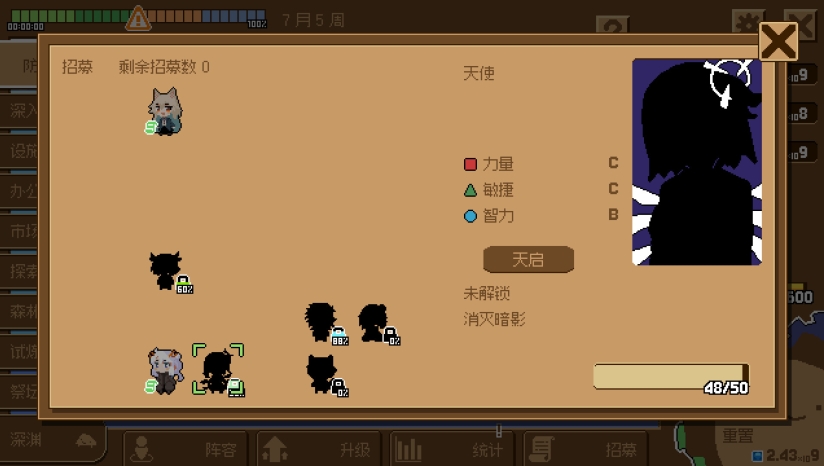 《深渊经理》采用像素图形风格,画面简洁而富有表现力。这种视觉风格与游戏注重策略和系统深度的特点相得益彰,让玩家能够专注于管理决策和资源分配。游戏界面设计以功能性和信息清晰度为核心,方便玩家掌控复杂的地下城运营各项数据。
