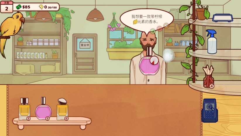 《调香师小铺》是Keep The Engine Games开发、Rogue Duck Interactive发行的手绘风治愈系模拟经营电脑游戏,玩家化身调香师,与鹦鹉伙伴一同经营香水工坊,全程参与调香研发、顾客接待、店铺布置与升级等环节,可从上百种香材中自由组合调配前中后调,定制香水包装与专属命名,邂逅带有故事与隐藏诉求的各类客人,精准解读需求完成定制订单,还能解锁稀有配方、适配季节需求波动,融合奇幻剧情与经营玩法,氛围温馨舒缓,兼具调香创作自由度与模拟经营的趣味性。
