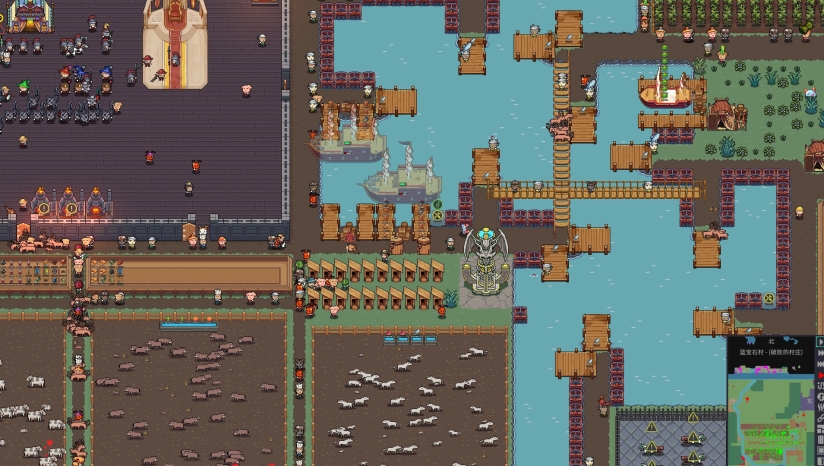 游戏采用像素艺术风格,虽为2D画面,但场景构建细腻。建筑如茅草屋顶的民居、高耸的教堂、坚固的城堡均充满中世纪风情,自然景观也刻画得生动逼真。界面设计注重功能性,常用提示清晰明了。整体画面在保持像素风格独特魅力的同时,通过丰富的细节营造出沉浸感十足的中世纪世界。