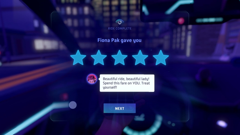 作为一款叙事驱动的冒险游戏,核心玩法围绕驾驶出租车接送乘客和对话选择展开。玩家需要通过应用程序选择乘客,穿梭于洛城的不同区域。游戏中最独特的机制是情绪管理系统。莉娜佩戴着一个未来感手镯,实时显示她的情绪状态。玩家的对话选择不仅影响乘客满意度,还会影响莉娜的心理健康。