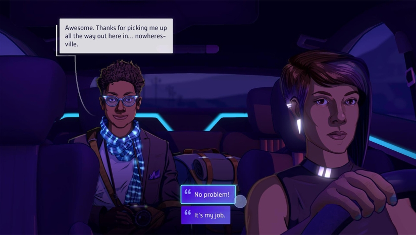 本作最突出的特色是拥有50多位性格背景各异的乘客,每个人都有自己的故事和秘密。通过与他们的交流,玩家可以拼凑出关于莉娜朋友失踪的线索,同时揭示这座城市的秘密。游戏采用分支对话树系统,并引入“直觉选择”机制。对话选项会随着莉娜情绪值变化,焦虑时可能说出伤人之语,冷静时则能化解乘客心结。