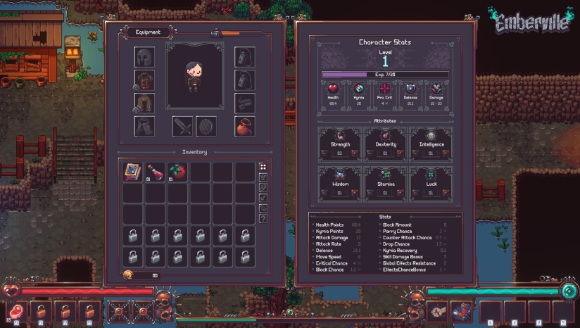 游戏玩法核心结合了《星露谷物语》式的农场模拟与《暗黑破坏神》式的动作RPG体验。玩家可自由耕种、采集资源、手工制作,并逐步重建破败的城镇。战斗系统采用简洁的双按键操作,包含武器连招、多职业技能树以及 Roguelike 风格的地下城“Vitromotus”。玩家可切换职业并继承已习得技能,实现高度自定义的Build构筑。此外,探索、解谜和决策系统也贯穿始终,玩家的选择会影响剧情走向与结局。