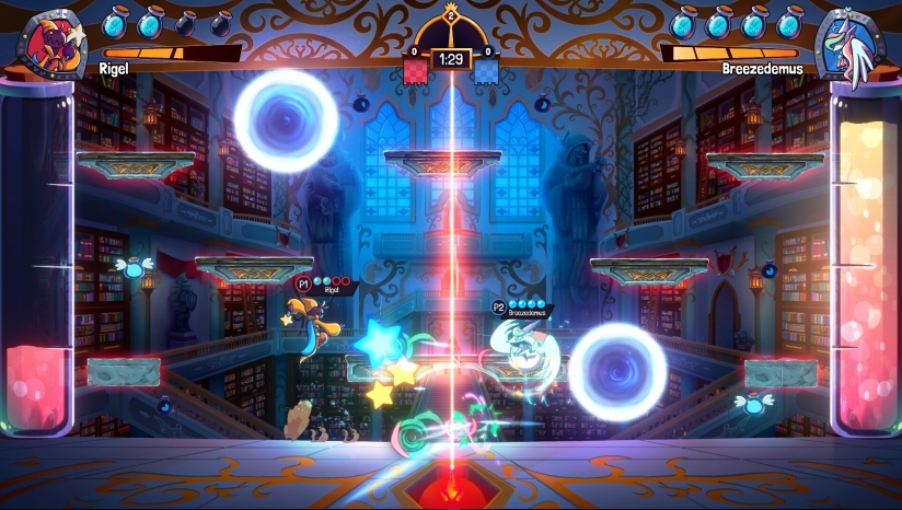 游戏采用精美的2D手绘动画风格,每个角色都经过精心动画设计,动作流畅且富有表现力。游戏中的每个战斗舞台都设置在学院的不同角落,每个场地都是独特的竞技场环境,具有鲜明的视觉特色。角色设计细腻,法术效果绚丽,为玩家提供了视觉上的享受。游戏同时专为手柄和键盘控制提供了专门支持,确保了操作上的流畅体验。