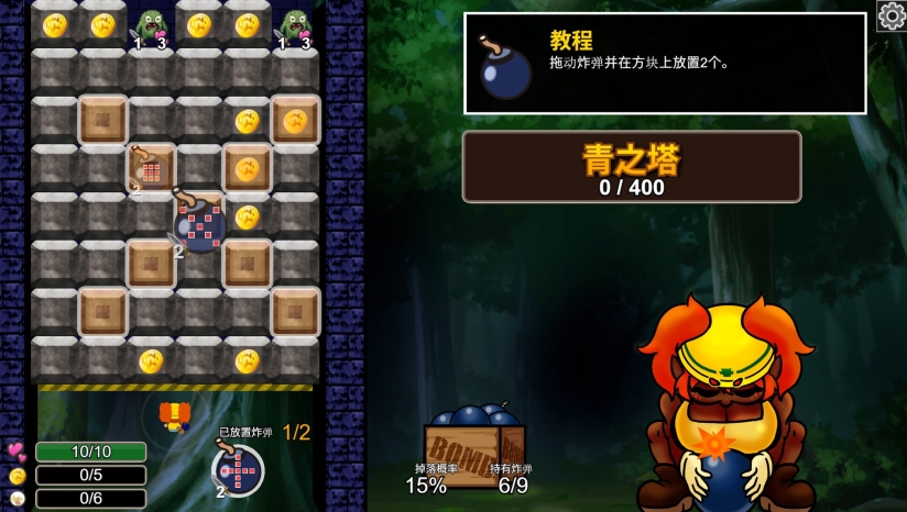 在 HP 归零之前,摧毁规定数量的方块,完成地牢的完全爆破!