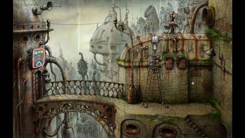 《机械迷城(Machinarium)》中每个角色都是机器人,包括我们的小英雄,他将为了对付坏人并解救自己的女朋友展开了一系列的解谜,没有多余的对白,游戏情节和线索皆靠细腻的动画来表现。细腻的手绘水墨风格打造后现代机械场景画面,让玩家置身在这部充满后现代机械情调的游戏中时,俨然彷佛随着主人公一同冒险,一同前进,一同困惑于种种谜题,一同领略大机器时代的绮丽风光。